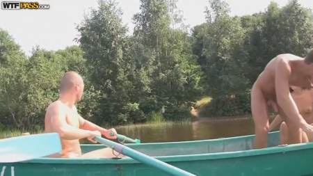 Веселые пацаны и стройняшная подруга топлес сняли лодку, чтобы уплыть на ней на дальний берег, где их никто не потревожит, ведь они собрались записать новое похабное видео с давалкой, которой приятно чувствовать себя единственной в округе девушкой на членах, на трех, да получить заветную надпись на грудь. Телочка попробовала двойное проникновение на пледе под открытым небом дыша свежим летним воздухом, а в Питере не так часто настолько солнечные дни, чтобы все разом загорели. Оставшееся оплаченное время четверо провели в арендованной лодочке, которую закончали несколькими разными жидкостями.