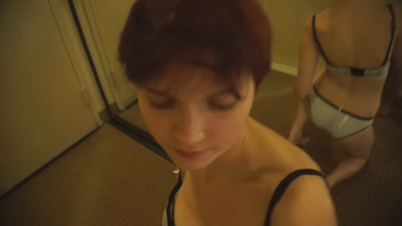 Короткостриженная бабенка остановилась в номере отеля вместе со смуглым любовником, который последнее время ее все меньше и меньше трахает в классическом понимании этого слова. Ей приходится ежедневно насасывать его темный хуй, не получая с этого никакой выгоды. Сейчас она сидит на полу и крупным планом без прикрас обсасывает все вокруг головки, надрочив пенис на свои маленькие, но забавные сисечки, сросшиеся друг с другом.