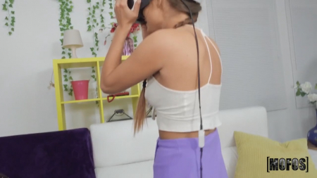 Темнокожий парнишка услышал как в дальней комнате происходят какие-то странные шорохи. Он на цыпочках пошел проверить чем таким может заниматься его девушка в одиночку. А она там проверяет что такое виртуальная реальность, первый раз в жизни натянула на голову шлем от playstation (по роликам очень популярная система у америкосов). Бойфренд лег голым на пол и стал ждать когда его дама сердца обнаружит на ощупь пенис. После интересного игрового опыта она не стала отходить, а сразу принялась орально поглощать пенис, чтобы тот из мягкого переделался в твердый, иначе на него не насадиться.