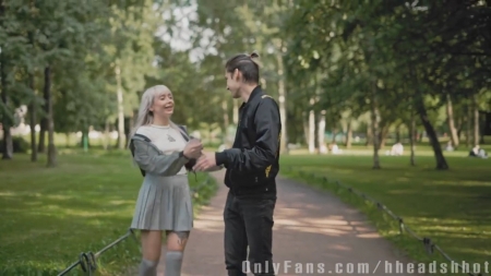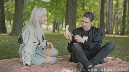 Блондинка первая пришла на свидание, расстелила плед в парке и стала ждать. Уже очень много времени прошло с момента последней переписки и она почти засобиралась в расстроенных чувствах домой, но бедный принц с бананом в руке вместо цветов явился онлифанщице hheadshhot. Недолго они беседовали, поедая свежий фрукт, а сразу изменили вектор романтического свидания на горизонтальный. Мальчик с хвостиком на голове влюбился в брекеты на зубах белокурой няшки, показав, что и молоденькие парни умеют обходиться с дамами в постели и у них может получиться крепкая ячейка общества на этой почве.