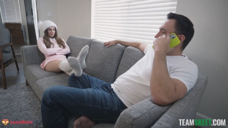 На улице намело рекордное количество снега и мужчина расстраивается в беседе по телефону со своей подружкой, что она не сможет приехать, хотя расстояние всего-то жалких пять миль. В доме еще находится младшая сестра, которая отвлекла от разговора парочку, сложив ножки на братика и попросив сделать так, чтобы перестало быть скучно. Сперва это были прятки с быстрым нахождением под столом и в шкафу, в котором сводная сестричка нашла странную игру - на задницу надевается пластиковый контейнер с шариками. Нужно трясти попкой, чтобы они оттуда вылетали. Тут-то она и светанула светлыми трусиками, предложив стать брату ее бойфрендом на ближайший час, а в благодарность она даст себя отыметь в попку.