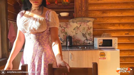 Мужчина приехал на лето отдохнуть в свою родную деревню и первым делом пошел к соседке бабе Зине, но вместо нее была какая-то красна девица, занимающаяся делами рачком перед домом. Неужели это Даша, та самая маленькая девочка, вымахавшая в стройную красотку, которая так и убирает говно за коровами!? Ее и не узнать уже, да и сам Димка возмужал. Впереди недолгая беседа за чаем, где симпатичная деревенская девчонка говорит, что ей уже исполнилось 18 лет, а парней-то на селе и нет уже, все в город уехали. Прямо сразу после первого комплимента она показывает сиськи с надеждой на продолжение траха в избе пока бабки нету дома.