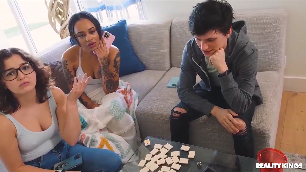 Смуглый брат вывалил хуй перед сестрой и ее подругой когда проиграл в карты