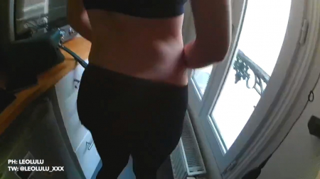 Фитоняшка вернулась домой и сразу в постель. Ну как постель, ее встретили прямо на пороге, где расположена крайне скромная очень узкая кухня и бойфренд не намеревается пропустить сеанс любительского секса с такой клевой телочкой. Он поиграл с ее вагиной пальцами пока она стояла, оперевшись задницей на столешницу, в таком же положении он развернул ее к себе задом и потрахал, после чего лег на пол, чтобы стройная девица продолжила тренировку задницу после спортзала сверху на его члене, пока он снимает на камеру с очень плохим звуком ее приглушенные стоны.