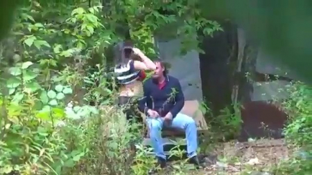 Внимательный и неравнодушный мужчина стал следить за подозрительной парочкой, они будто что-то искали. Оказалось, что они пытались подобрать более удачное место для своих уличных потрахушек, где толстушку смогут выебать глубоко в глотку, а также ее пизду, сильно возбуждающуюся от необычного места - в каких-то заросших ебенях за гаражами. Они так и не узнали, что от начало до конца за ними следили издалека, хотя бабенка не гнушалась стонать во весь голос.