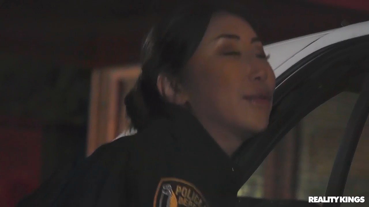 Азиатка-полицейская включила маячки, так как увидела как на ночной улице девушка делает своему парню минет возле машины. Девчонка забаррикадировалась внутри автомобиля, остался отвечать только ОН, спрятав свое "оружие" обратно в штаны. Его досмотрели и приказали доставать хрен, чтобы проверить эрекцию. Пришлось слушаться, давать в рот незнакомке в полицейской форме и трахать в патрульной машине. Подружка не очень быстро сообразила проверить чем занимается бойфренд, а когда подошла поближе, то тоже приняла непосредственное участие в групповухе, тут без вариантов, иначе статья.