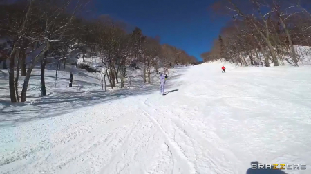 Когда ты так сильно любишь потрахаться, уж точно найдутся парни, готовые заплатить за твою поездку куда-нибудь вместе отдохнуть. Двое отличных друзей везут потаскушку почудачить на сноубордах и уже по пути в машине она отсосала и дала себя отыметь на заднем сидении. Совсем немного покатавшись на фуникулере с хуем во рту, по склону с голыми сиськами, телочку начинают пороть раком, но Энджэл толкает ребят в снег и сама убегает в дом, где с ней продолжаются приключения в душе и на обычном диване. Двойное проникновение - это то, что реально приносит удовольствие телочке больше развлечений на холодной улице.