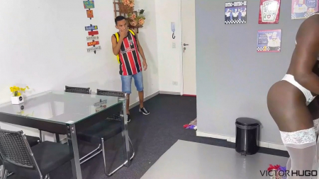 Мелкий латинос встретил на кухне здоровенную домработницу родителейHD