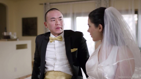 Осталось всего несколько мгновений до начала церемонии и невеста захотела продемонстрировать своему будущему мужу небольшой сюрприз, который прямо сейчас вставлен в ее прекрасную попочку. Это анальная заглушка в виде бутона цветка, а так как жених очень целомудренный и венчание проходит в церкви, он не захотел даже смотреть на игрушку. Разговор тем временем подслушал дружок невесты, который поспешил ее успокоить и заценить красоту в ее заднице, вытащив пробку и вставил туда свой член. Целый час он долбил чужую супругу, а когда кончил, помог ей надеть свадебное платье обратно.