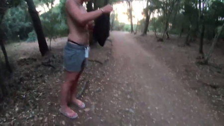 Парень с камерой идет позади стройной подружки с кругленькой попкой в шортах и сочной грудью, которую та игриво демонстрирует несколько раз пока они ищут укромное место в лесу среди деревьев. Эксгибиционистке нравится это острое ощущение, что в любой момент кто-то может ее застукать обнаженной, из-за чего киска намокает буквально в считанные секунды, но сперва она сделала минет и лишь потом нагнулась возле деревца. С собой у извращенной парочки есть что постелить на землю, но они стали торопиться гулять дальше и поэтому бойфренд встал с членом возле лица барышни и стал дрочить одновременно с ней, слушая как пизденочка француженки смачно захлюпала от пальчиков.