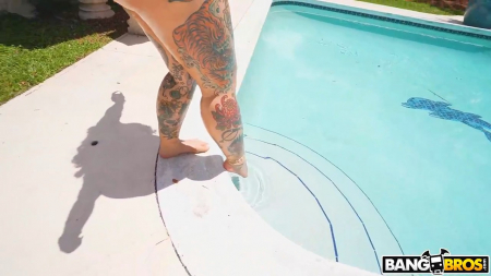 Крупная азиатская бабень очень любит свое расписное татушками тело, которое она достаточно сильно откормила, сделав себе еще и непомерно огромные сиськи, облитые хозяйкой маслом, чтобы они блестели от летнего солнца вместе с задницей. Покупаться в бассейне долго не получилось, так как стояк у черного порноактера уже дымится на такую цацу, а как мы знаем, негры очень любят пампушек и нет разницы каким цветом будет ее кожа. Сразу после бассейна парочка перебралась в дом, дабы больше не наталкивать воду в пизду азиатки, а нормально скользить между ее половыми губами.