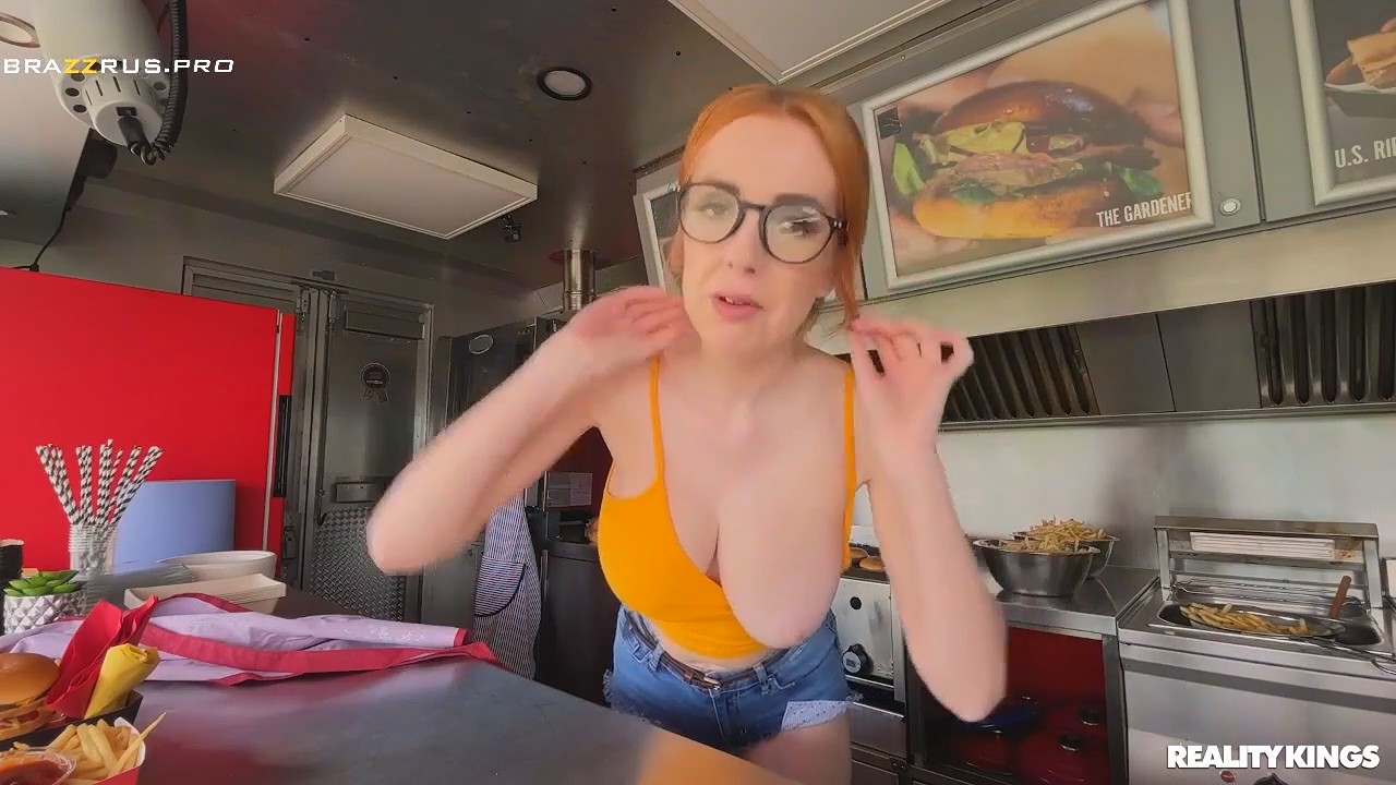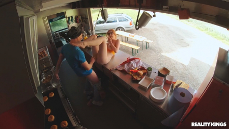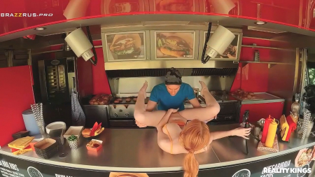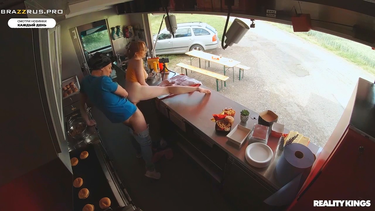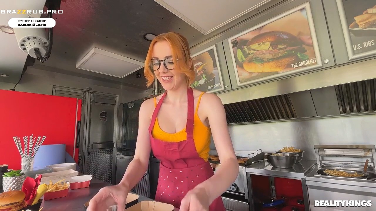 Рыжая девушка решила стать самостоятельной бизнесвумен, так как начальник на прошлой аналогичной работе был полным говнюком. Сейчас же она может включить запись на телефоне для друзей, показав как проходит ее первая рабочий смена, как толпа покупателей повалила в первые минуты открытия фургончика с едой. Их было так много, что не обошлось без помощника - бойфренда симпатяги, который так же восхищается вкусом картошки фри, но еще больше ему нравится вкус киски подружки, которую он отымел в фудтраке, не сильно стараясь спрятаться от пытливых взглядов проходящих или проезжающих мимо людей.