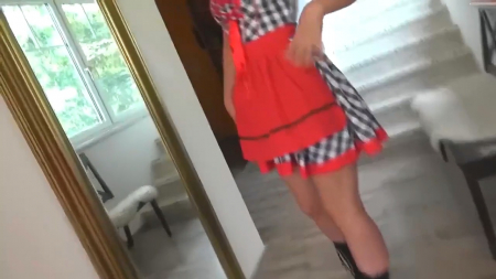 Девица на высоких каблуках нарядилась в почти народный немецкий костюм и красовалась собой перед зеркалом. Ее застукал голый сожитель, который решил воспользоваться подружкой, пока она не пошла на фестиваль пива дразнить других мужиков своим нарядом. Телочка присела на корточки, чтобы отсосать его длинного немчика, после этого акробатка подняла одну ногу вверх и дала себя оттрахать, практически не присаживаясь, так как она научена очень много быть на ногах. Кончив девке на сиськи, молодой человек сексапильной барышни отпустил ее работать официанткой для бюргеров.