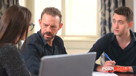 Два партнера по бизнесу решили одновременно выучить иностранные языки, а должна им в этом помочь сексапильная учительница, которую они вызвали на дом. Ей оказалась молоденькая барышня с выдающимся бюстом, из-за которого легко отвлечься от обучения. Оставив незнакомку одну, чуваки стали громко обсуждать ее здоровенные "банки" и девушка в очках это услышала. Она спешно повела друзей обратно, чтобы показать им небольшую демонстрацию мастурбации шариковой ручкой и самотыком на столе и трахнуть обоих самцов всеми своими дырками, дав кончить практически в ротик, размазав сперму по сиськам.