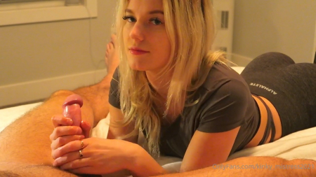 Голый мужчина пустил себе между ног подружку, смазавшую его ствол маслицем, пока он еще не полностью поднялся в боевую готовность. Симпатичная канадская телочка стала разминать хуятину в обеих руках и вскоре он полностью наполнился кровью, а значит ему пора дать удовольствие опытными движениями. Хоть партнер и пытался держаться подольше, его яйца были другого мнения и от нежных женских ласк вскоре они выпустили наружу струйку спермы, заставив хозяина биться в слабеньких конвульсиях, так как ему стало одновременно и очень приятно и больно - подруга продолжала поглаживать головку пальцами.