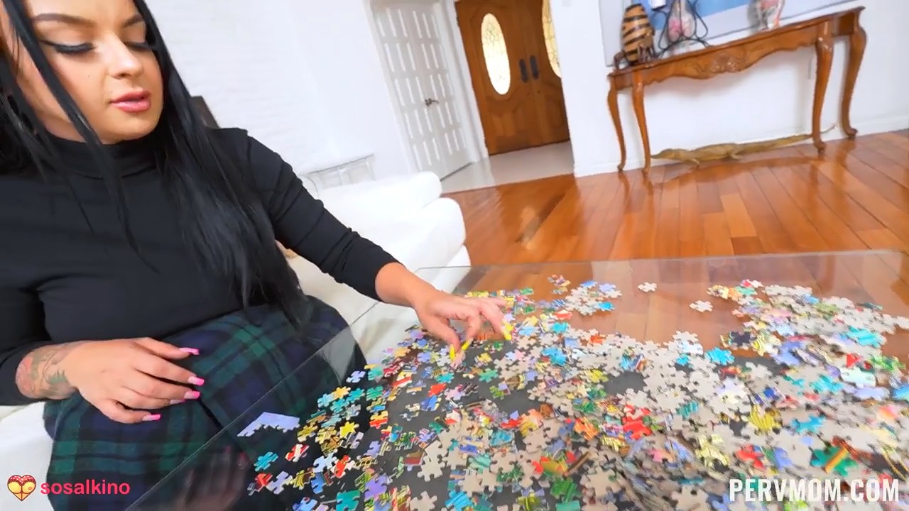 Мамка пару часов назад была на улице в магазине и не разрешила пойти пасынку к друзьям, так как их сильно замело. Вместо этого сочная симпатяга предложила собрать пазл, а чтобы было интересней играть, за каждый найденный подходящий элемент она будет давать награду. На первый раз мамка просто показала сиськи, на второй дала их потрогать руками. Несколькими моментами позже в доме стало холодно и тогда круглолицая согрела член парня сочным минетом на кухне. В последний день жесткой метели она сама пришла в спальню к мальчику и наконец-то ему отдалась, позволив кончить внутрь пирсингованной киски. Теперь-то он вдоволь насмотрелся на большие буфера.