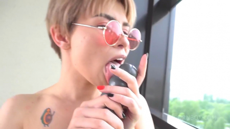 За окном просто замечательная летняя погодка, а в апартаментах, не первый раз замеченных в съемке порно, находятся сразу три человека: короткостриженная молодая девушка, порноактер и оператор, который комментирует как нужно раздвигать мощные булочки юной шлюшке перед толстым членом. Для начала в ее глотке и заднице побывал увеличивающийся к основанию самотык с кругляшами, после этого она испробовала тем же самым мужской орган и принялась жариться возле окошка, глядя то на своего ебыря, то на улицу, где сотни людей могли бы поднять голову и увидеть прекрасное, а именно как трахарь не может остановиться сношать очко даже после того как туда спустил.
