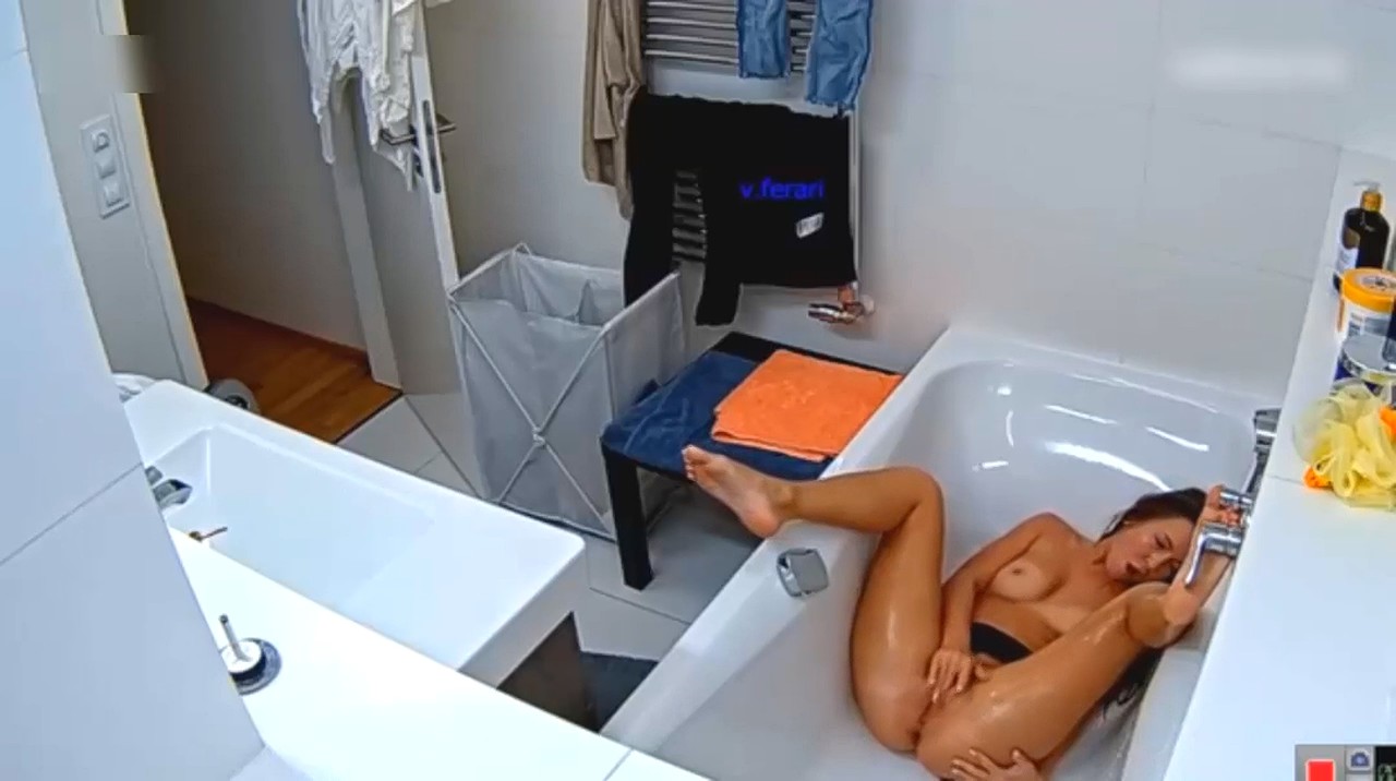 Как это обычно происходит - пара не сошлась характерами и парень расстался со своей подружкой, не ставшей искать кого-то на замену. Вместо этого она каждый день пользуется классным подарком в виде ванны с очень удобной мощной струйкой сбоку. В благодарность онанистка так же не стала отключать камеру умного дома, что установлена на потолке и каждый раз она специально заводит свое шоу мастурбации, чтобы экс-молодой человек мог смотреть как бывшая кончает от струй воды из лейки и самой ванны, стирая свой член рукой от крайне возбуждающего вида онанирующей девушки.