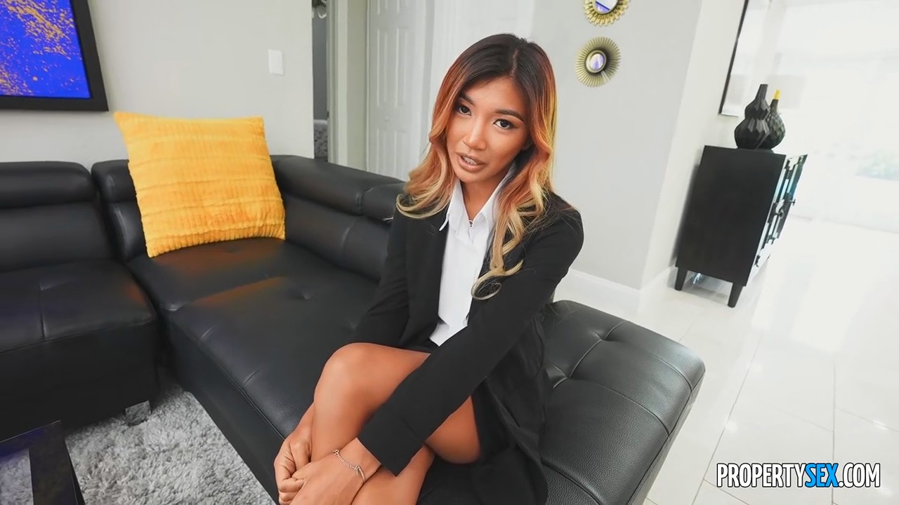 Мужчина прекрасно знал в каких апартаментах сейчас работает его коллега-риелторша. Она, как всегда, с самого раннего утра осматривает помещения, чтобы немногим позже показать их потенциальным клиентам. Но вместо них в дверь постучал мужчина, хотевший поговорить с азиатской девушкой. Она с радостью выслушала проблемы жаворонка и с непокидаемой улыбкой разделась, вкусив его длинный член своими ротиком и вагиной. Так как мы смотрит видео от лица главного героя, прям появляется желание не кончиком большого пальца ласкать анус азиатки Тринити, а резко засадить в ее узкий анал, но такого, к сожалению, не случилось.