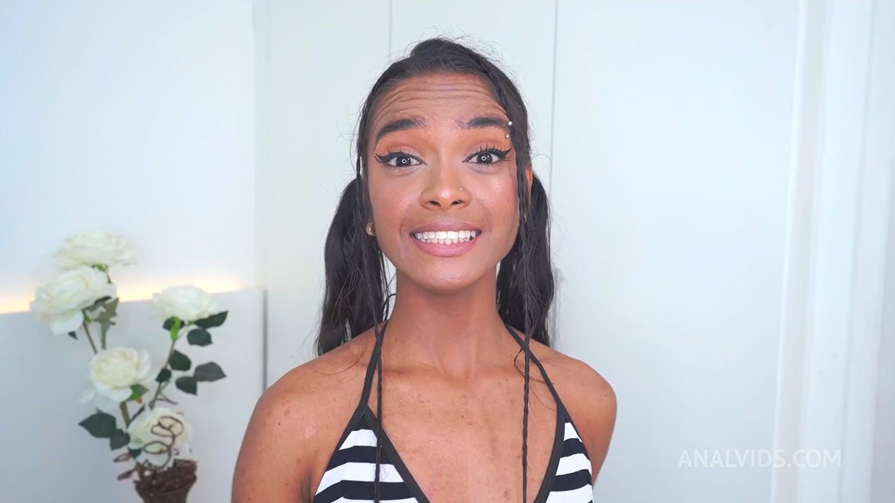 Перед началом полноценного видео зрителя знакомят с примерным содержанием, показывая насколько может быть дырявой миниатюрная девушка с симпатичным личиком и худеньким стройным телом. Девчина помотала смуглой задницей перед оператором, села полулежа на диван и получила первый толстый хуй актера. Чуть позже к нему присоединились еще двое напарников и теперь жопе латинской шлюшки стало не до шуток, ведь в нее (как это вообще возможно?!) воткнули сразу два хуя, так ведь еще и в жопку! Почти весь ролик бразильяночку не покидали хуи, они лишь менялись в очереди в попу. Кто последний в этот милый зад?!