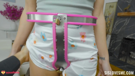 Худенькая блондинка собралась пойти на вечеринку, но ее остановил старший брат, попросивший приподнять юбку, чтобы убедиться, что на сестренке нет трусиков. Из-за этого он заставил ее надеть пояс верности, так как ему нужно сделать так, чтобы за неделю, пока родителей не будет дома, она не залетела от кого-нибудь на тусовке. Позже соска рассказала как слегка возбудилась и смогла помастурбировать, но после минета брату ей все больше хочется ощутить в себе именно пенис, ведь когда что-то теряешь, начинаешь по этому скучать. Парень разрешил снять пояс верности и собственным хуем удовлетворил щуплую засранку, кончив ей в ротик на всякий пожарный.
