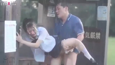 На улице идет самый сильный дождь за последние месяцы. Дабы не получить неожиданных проблем, все сидят дома или дожидаются на работе, но не наша героиня, которую ждут дома несколько голодных питомцев. Японочка добежала до остановки и стала ждать автобус, но кроме нее был подозрительный мужчина, с которым она поздоровалась, чем спровоцировала на действия. Извращенец подошел вплотную, противно обнял и стал лезть в трусики. Уже на данном этапе азиатка пересралась от испуга, но чем дальше, тем для нее становилось хуже, так как хныканья только сильнее раззадоривали сексуального маньяка, оттрахавшего жертву прямо на остановке.