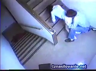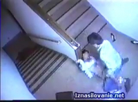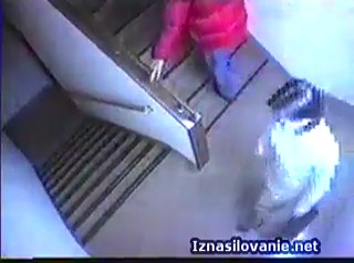 Обычные люди ходят по лестнице и даже школьницы мелькают парой, но не повезло именно одиноко спускающейся девушке в довольно коротком платье. Выглядит девушка весьма сексуально, из-за чего поднимающийся наверх незнакомец в красной куртке резко развернулся и накинулся на свою жертву, заставив от неожиданности ее взвизгнуть. Так как время позднее, все побоятся выйти помочь соседке, поэтому маньяк смог маленьким писюном, который даже не видно на камере наблюдения лестницы, оттыкал бедолагу в вагину на грязном, холодном бетонном полу. Если это реально, то осуждаем, но все мы понимаем, что скорее всего это очередная японская постановка.