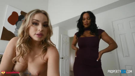 Успешный семьянин вместе с чернокожей супругой собрались прикупить новое жилье и есть подходящий по всем параметрам вариант со свежим ремонтом. Жене позвонили, поэтому герой, от чьего лица мы смотрим данный ролик, остался один на один с риелтором и та всячески ему намекала на полный сервис. Тот не понимал намеков, пока маленькая красотка не сняла с себя одежду. Ее ротик ухватил губами член покупателя, а когда их застала будущая хозяйка, девица объяснила, что так нужно и что не помешало бы и негритянке присоединиться к удовлетворению мужа, ведь именно от него зависит будет ли семья праздновать новоселье в шикарном особняке.