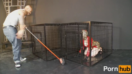 "Дикую кошечку" мужчины держат в клетке и используют ее как захотят. Естественно, держат сексуальную крошку исключительно для интима. Стройная милашка в латексном костюме "кошечки" сосет одному своему "укротителю" и обманом заманивает его в клетку. Но на помощь первому мужчине подоспел второй и девушка была оттрахана и снова посажена в клетку.
