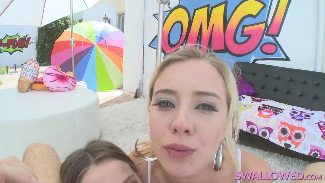 Две стройные симпатичные подружки удовлетворяют общего знакомого оральными ласками. Рабочими глотками и острыми язычками подружки доводят мужчину до исступления, но это не мешает снимать ему девчонок крупным планом. Сначала очаровашки вдвоем сосут - одна твердый член, вторая - яйца. А после одна сосет, вторая анус мужику лижет.