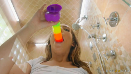 Типичная улыбчивая американка ответила на пару последних вопросов перед съемкой. Она только-только успела накраситься в ванной и взяла разноцветный самотык в руки, присев на полу просторной ванны. Немного поласкав киску руками, девушка приклеила фаллоимитатор к стеклянной двери душевой кабинки и потрахала себя дверью, а потом пришел голый чернокожий парень, который дал пососать малютке свой большой писюн, а потом выебал кроху в тугую вагину, чуть не заставив по-настоящему кончить. Хотя если бы актриса не отвлекалась на закатывание глаз, получила бы побольше кайфа.