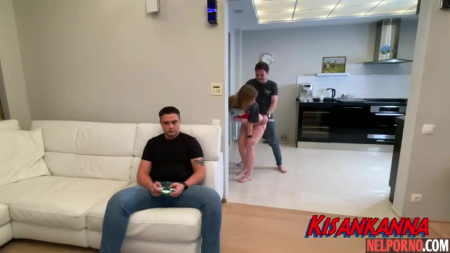 Муж постоянно играет в игрушки, а его вторая половинка не сильно разделяет увлечения. Ей больше нравятся не приставки playstation, а члены и один из них пришел в гости, посидеть рядом и полюбоваться не только картинкой на телевизоре, но и замечательной девушкой, с которой они вместе ушли на кухню. Там он оттрахал ее голову, заставив смеяться, что пошло не по плану, а потом отымел за стеной, где вообще нет двери на кухню. Супруг обо всем догадался через 10 секунд - любимая вышла оттуда со спермой под носом и буквально побежала в ванную комнату, пока любовник ищет пятый угол по квартире.