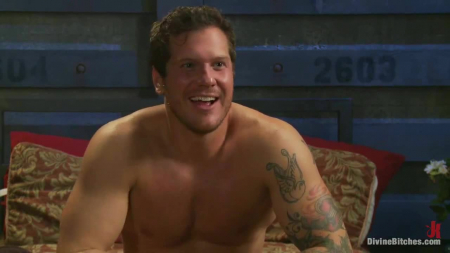 Сидящий на стуле со связанными руками за спиной мужчина не видел свою хозяйку. Она некоторое время лежала на постели и любовалась своим владением, но пришла пора действовать и наказать красавчика за то, что у него между ног висит член. Сперва красивая доминатрикс подрочила его, яростно, с особым остервенением, заставила его стонать от боли и удовольствия. После этого опытная проказница пальцами поковырялась у него в заднице и поняла, что нужно надевать страпон и трахать его узкий анал. Вскоре и сама доминантка примерила киской его пенис, отдрочив бедолаге на его собственный живот.