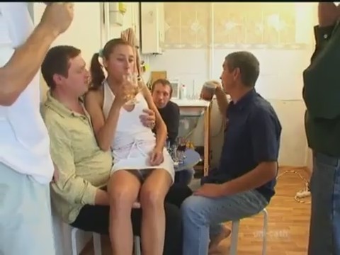 Мужчина решил жениться, но надо всем поделиться с лучшими друзьями. Мужик привел свою девушку к пьяным друзьям, так сказать "на пробу". Симпатичная телка выпила и ей начали предлагать заняться со всеми сексом. Немного подумав, распутная Ирка согласилась и пятеро мужчин отдолбили телку по очереди и дали ей свою оценку.