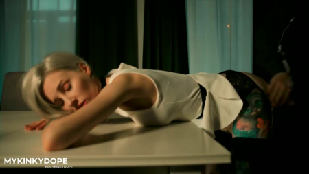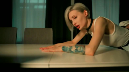 Аппетитная сосочка с короткой прической и Чеширским Котом на бедре отсасывает в полумраке, приподнимаясь так, что становится видно эту прекрасную задницу, между булочек которой припряталась сочная вагина, набирающая влагу словно роса на траве после сильного тумана. Настонавшись и насосавшись, красивая светловолосая героиня с очень тонкой талией ложится животом на стол, чтобы любовник пристроился к ней сзади и трахал с собственным темпом, то тихонько проникая внутрь, то делая резкие движения, от которых блондинка вздрагивает, чуть сильнее постанывая. Шлепки по заднице после сцены очень понравились фигуристой девушке.