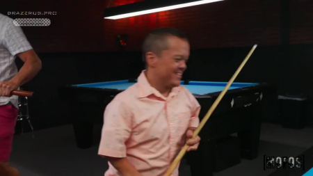 Pov-парень гуляет между бильярдными столами и пытается завести знакомства с разными девушками, но они все при своих половинках или даже отцах. Особое внимание привлекла забавная парочка - высокая блондинка и ее бойфренд, который чуть выше метра ростом. Довольно несложно оказалось склеить цыпочку на секс прямо при всех и ей даже позвонил агрессивный лилипут, чтобы расстаться. Он же чуть не устроил потасовку, так как ему надоело, что его пассия, которой он оплатил сюда перелет, спит с каждым первым встречным. А все подумали, что его хуй должен быть огромен, раз такая краля с ним нянькается.