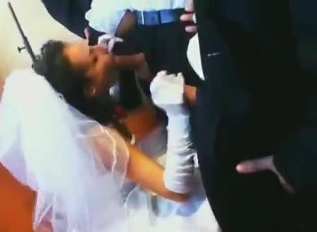 Три парня в черных праздничных смокингах придумали что подарить невесте в день ее свадьбы - они угостили ее генг-бенгом с двойным проникновением. Шлюха в белом платье жадно отсасывает всю троицу членов одновременно. Ее постепенно подготавливают к двойному проникновению, начав трахать только в рот и влагалище, но все же процесс дошел до двойного проникновения в роскошную задницу. Каким-то образом во рту невесты оказался кляп в финале, когда красивой девушке все присутствующие кончали на лицо.