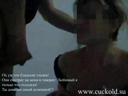 Поднимаясь в лифте на 10 этаж, фигуристая супруга куколда ласкает свою грудь. Вместе с любовником красотка идет впереди и почти сразу начинает целоваться - ей не терпится уже начать заниматься сексом в общественном месте, заставляя организм вырабатывать огромные дозы адреналина. Сам рогоносец описывает свои чувства в момент измены прямо в субтитрах - он с трепетом относится ко второй половинке и ее развлечениям. Как вы уже догадались, ее самое любимое хобби - это заниматься непотребствами в разных местах на глазах у мужа, как здесь, в подъезде. Это только первая часть, если попадется, добавим и вторую.