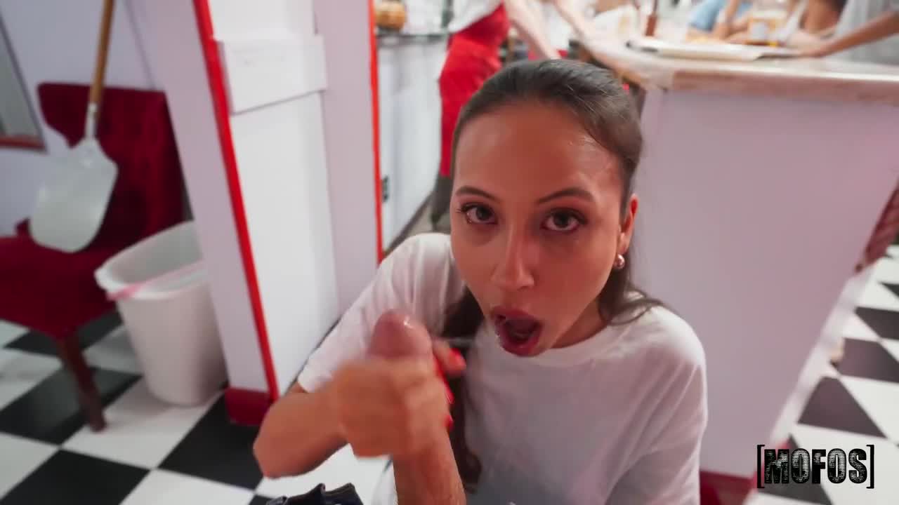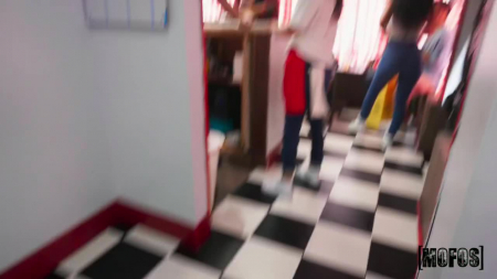 Эта пиццерия не простая, тут всегда много народу, а работники полностью отдаются своему делу. Особенно кассиры за прилавком - они занимаются непотребствами в то время, пока разговаривают с посетителями. Парочка персонала успела и на полу поебаться в туалете и на кухне немного побаловать себя сексом и на диванчике в самой непосещаемой комнате. Когда же уже все клиенты догадались, что здесь трудится шлюха, та в трусах задницей села на куски пиццы, чтобы молодой человек попробовал кусочек с секретным ингредиентом. [Mofos] Lola Aiko, Scarlett Karli - The Pizza Corner.
