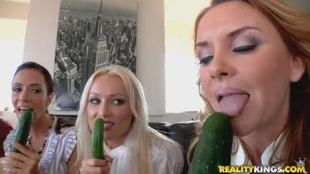 Учиться никогда не поздно, а совершенствовать свои навыки и вовсе не стоит стесняться. три очаровательные телочки пришли на мастер класс по теме "как правильно удовлетворять мужчину и доставлять ему огромное удовольствие".Рыжеволосая руководительница показала девушкам один хитрый и действенный способ на примере огурца. А после девушки смогли опробовать этот прием на настоящем члене. Милашки отсосали мужику и быстро довели счастливчика до оргазма.