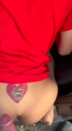 Как только мелкая шлюшка с татуировкой на пояснице "slay me" встала коленями на переднее сидение в красной футболке, бойфренд заснял красивую местность, где по дороге не ездит кроме них ни одной машины. Его рыженькая потаскушка уже оборачивается на любовника и вопрошающим взглядом требует, чтобы он вставил в ее анальную дырочку свой член. Отказать в такой безмолвной просьбе вряд ли кто-то бы смог и потому он неторопливо загнал пенис в дырочку, пока его маленькая дрянь крутит задом снимая футболку, чтобы он легче проваливался и приятней. Приятно точно было хорошо - всего две минуты и парень кончить в анал.