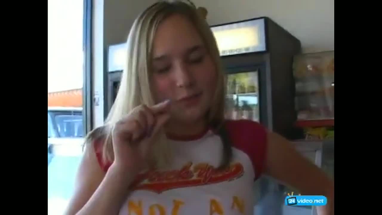 Такое бывает только в порно фильмах: ребята, один из которых с камерой, общались друг с другом когда заприметили маленькую молодую девицу в магазине. Она улыбается во все 32 зуба неизвестным и с удовольствием соглашается на приключения в незнакомом ей месте. Юной шаболде стало интересно посмотреть на самый большой и толстый черный член, который только она сможет увидеть вживую за всю жизнь. Сосать его было трудней всего - ротик буквально не может натянуться дальше головки, а в пизду он не влезает тем более, хоть плюй на ствол, хоть смазывай по-человечески.