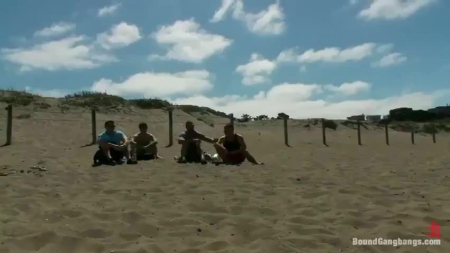 Две подружки весело проводили время на пляже, поглядывая в сторону четырех парней. Одна из девчонок отправилась в океан, другая же пошла пописать в здешний туалет. Это услышали мужики и отправились следом за незнакомкой, закрыв толчок на замок, чтобы никого не впускать, пока они будут насиловать прекрасную жертву. Первый ее отъебал рядом с унитазом, но один он не захотел справляться с фигуристой зажигалкой, потому ему помогли остальные, слушая как телка с пляжа орет в бешеном экстазе от двойного проникновения. Ей будет нетрудно смыть сперму с сисек и лица, просто искупавшись снова.