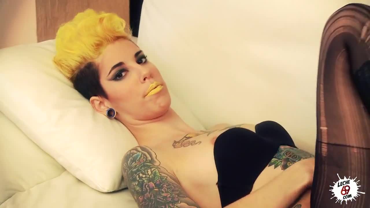 Короткостриженная неформалка спокойно читала последние новости в интернете когда к ней на скамейку села та, кто отведет в определенное место, переоборудованное под порно-студию. Испанка с желтыми волосами все видео будет находиться в колготках, трахаться с незнакомцем, и все прошло, вроде бы, замечательно, но нам больше не удалось найти ни одного видео с участием этой странной на внешность татуированной девушки. [LECHE69] Lina Heels - La chica de los tatoos.
