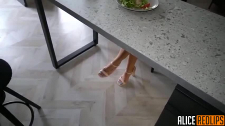 Сделав салат и отдав его красивой хозяйке, прислуживающий за зарплату парень интересуется будет ли нанимательница еще и чай. Та соглашается и начинает разговаривать по телефону, пока мы моем посуду на кухне. Наконец, все было готово, но странный взгляд красотки настораживает - она явно что-то задумала. Очень хорошо, что состоятельная эскортница имеет просто игривое настроение для секса на кухонном столе с собственной прислугой. Парень всегда мечтал самому поучаствовать в половой жизни блондинки, узнав чем конкретно она так хорошо зарабатывает на аренду крупного дома.