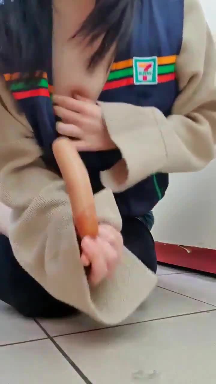 Та, что совершенно ничего не стесняется и не боится, украла сосиску с прилавка, чтобы спрятаться за ним и, включив запись видео на телефоне, воткнуть ее в сладкую азиатскую дырочку крупным планом. После этого извращенка пошла дальше и стала дрочить не только свою главную дырочку, она без труда засунула гнущийся мясной продукт прямо в попку и это ей, несомненно, очень понравилось, но больше всего кайфа доставил адреналин, из-за возможности быть застуканной в самом извращенном примере женского поведения. Ну и облизать она после всего случившегося сосисочку не забыла.