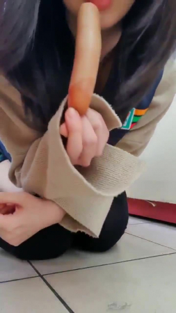 Порноломка » Азиатки » Юная азиатская извращенка подрочила сосиской обе дырочки, спрятавшись в магазине