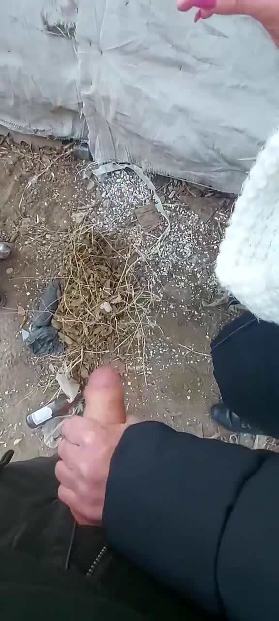 Неизвестно при каких обстоятельствах троица оказалась за какими-то разбомбленными гаражами в холод, но суть в том, что парень дрочил член при двух телочках и предложил кому-нибудь "попробовать". Та что справа с удовольствием взяла его хуй в крепкую руку и стала гонять его шкурку, стоя сбоку. На просьбу вторая не ответила положительно, но сказала, что просто посмотрит. Так продолжалась съемка на телефон несколько минут пока из головки на землю не показала сперма. Девица все сильнее сжимала ствол, легонько подрачивая, будто пыталась выдавить оттуда все без остатка. Молодому человеку очень это понравилось.
