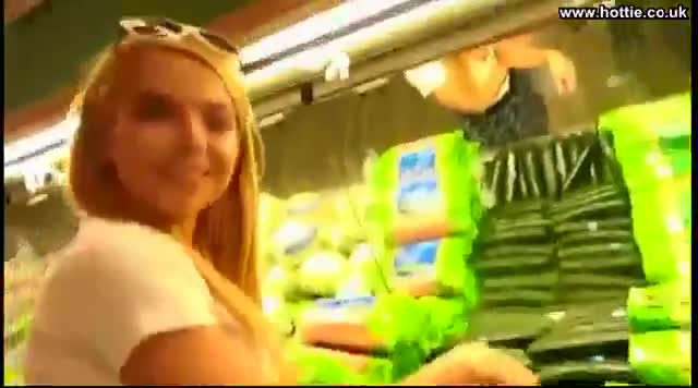 Эксгибиционистка в солнцезащитных очках отправилась вместе с другом в продовольственный магазин прикупить чего-нибудь для летнего салата. На глаза попалась полка с овощами, мимо которой было трудно пройти, так как на ней красовались привлекательные огурчики - такие большие, твердые, свежие. Дурочка бегло осмотрелась по сторонам и приподняла юбочку, вставив овощ прямо в киску. Да, на извращенке как обычно не было трусиков. В какой-то момент ее чуть не застукал покупатель, но она быстро одернулась, а потом вновь засунула огурец в письку. Дамы и господа, обратно она его не положила!