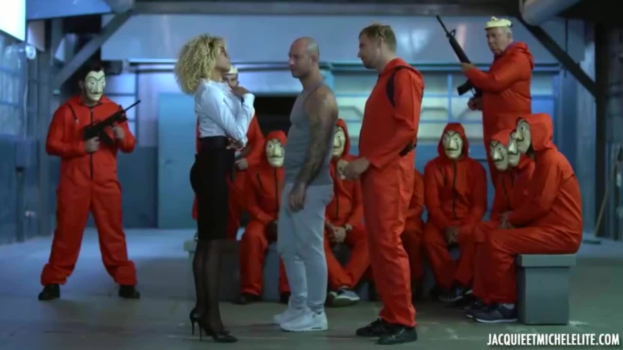 Французская преступная группировка похитила несколько человек и теперь у них есть требование: отпустить из тюрьмы члена банды. Так как капитан полиции собственноручно унизила сексуального маньяка, она должна искупить свою вину, занявшись сексом при заложниках с двумя вооруженными негодяями. Позже одна из заложниц решила, что она самая хитрая и потому попробовала соблазнить одного из грабителей. Вдвоем им приходилось оставаться недолго, так как подоспел еще один парень - они вдвоем выебли давалку во все щели. Также выяснилось, что среди заложниц есть любовница прокурора - телочку вызвали на бандитский допрос, где она согласилась снять трусики и заняться жмж сексом с главарем и его приспешницей. Было снято видео, отправленное на почту расстроившемуся прокурору, который согласился освободить еще одну сексуальную преступницу - она тянула время сексом со спецназовцем перед освобождением. План ограбления полностью сработал! [Jacquie et Michel Elite] La Casa De Michel.